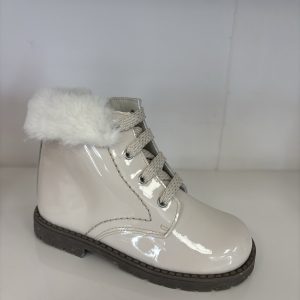 A Andanines Fur Lace Up Beige Patent