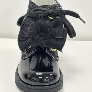 A Andanines Black Patent and Glitter Bow