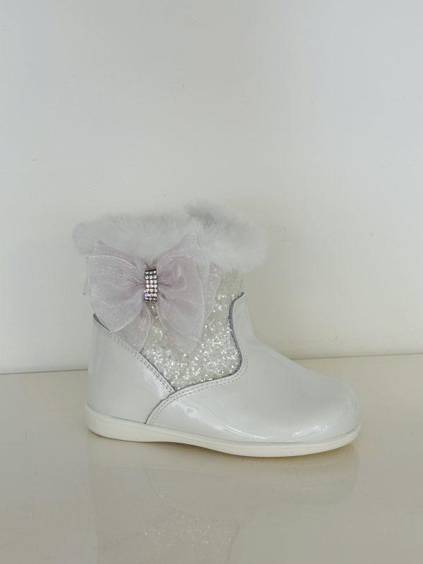 A Andanines Baby Bow Ivory Patent and Glitter