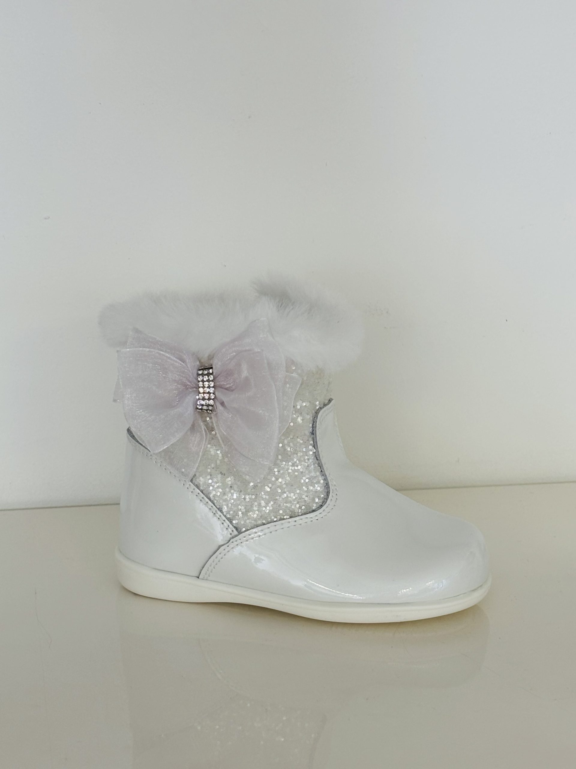 Be the first to review “A Andanines Baby Bow Ivory Patent and Glitter”