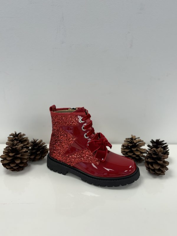 Be the first to review “Andanines Red Lace Up Velvet Bow Patent Boots”