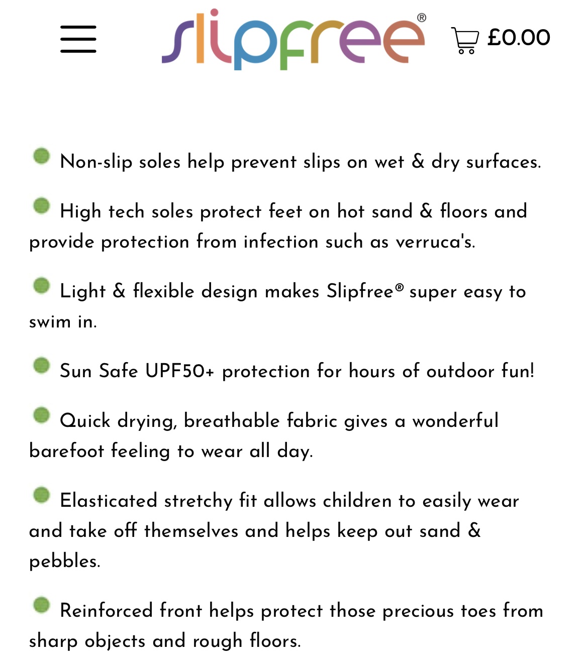 Protect children from the dangers of slipping and falling, burning their feet on hot floors and from sharp objects. Our patented Slipfree® design is extremely flexible, comfortable and easy to swim in. A barefoot feel to wear all day and rated Sun Safe UPF 50+ our shoes are multifunctional and can be used in so many places.